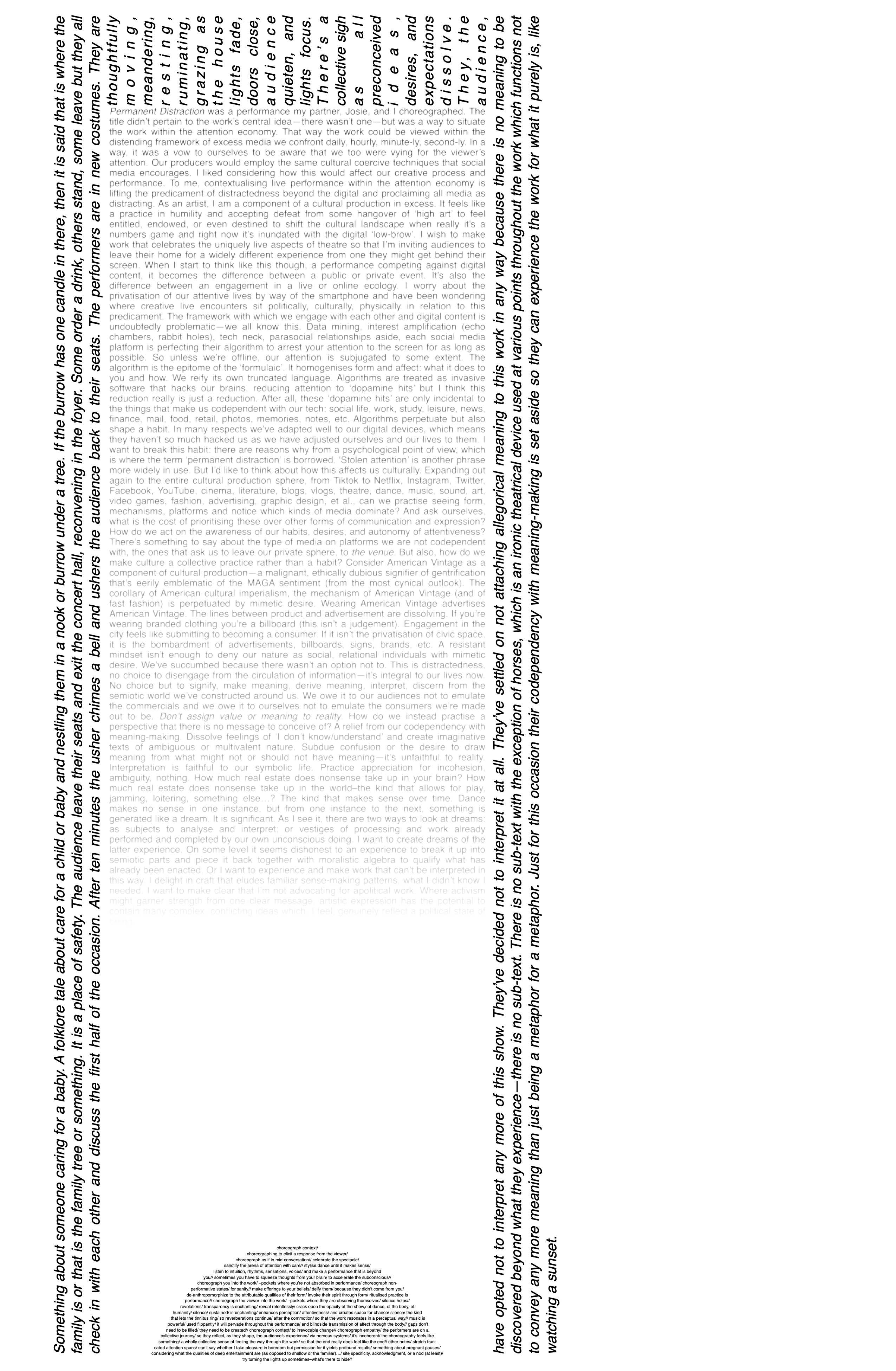 Kosta Bogoievski is an Ōtautahi based artist wading in the creative swamp plucking everyday language and flow for poetry and prose, choreographing unorthodoxly, and dancing with an application of principles from Klein Technique, Material for the Spine, and Body-Mind Centering. I mostly work in tandem with my love, Josie Archer, as ‘Josie and Kosta’.