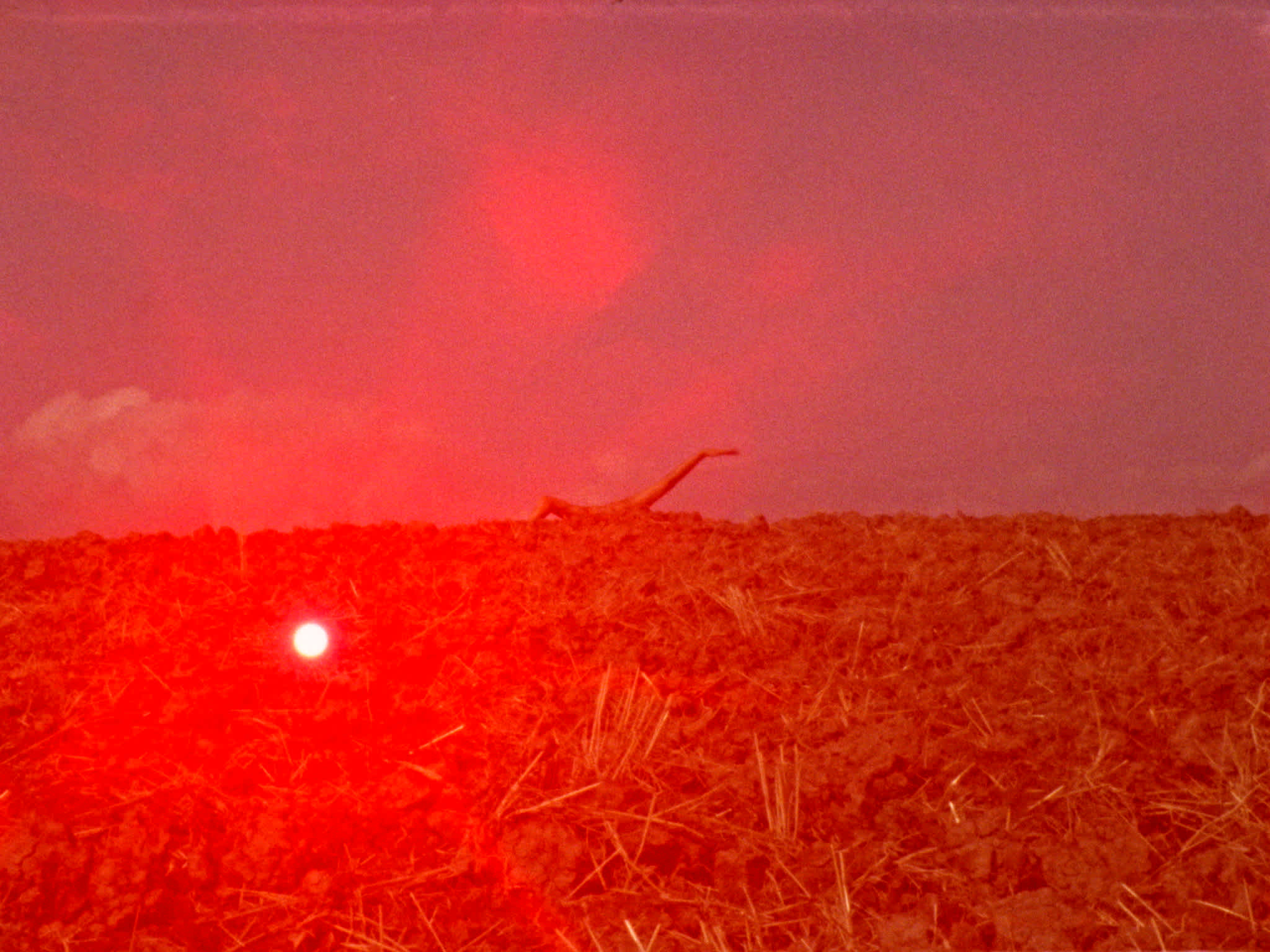 I recently worked with James Rushford, an Australian composer and performer, whose work has been described as “haunted Jacobean ASMR.” He sometimes plays a portative organ, or organetto, which originated in the twelfth century. The organetto has a row of flue pipes and a set of bellows and can sit on the performer’s lap. This positioning makes the body of the musician an important element in the composition, and the surrounding air being drawn continuously through the mediaeval instrument creates an interplay of chronologies and anachronisms. We were on residency together in Siena, and I was lucky enough to hear him play his organetto on a few occasions. James composed a piece for my most recent film Badlands, which is one of the few times I have choreographed the image to the sound—usually I tend to have the sound designed once the edit is complete. Because of this, it is my most dance-like film, and as it was partially fed by the work of Ernesto de Martino and his writings on Southern Italian magic rituals and the tarantella, this approach made the most sense.