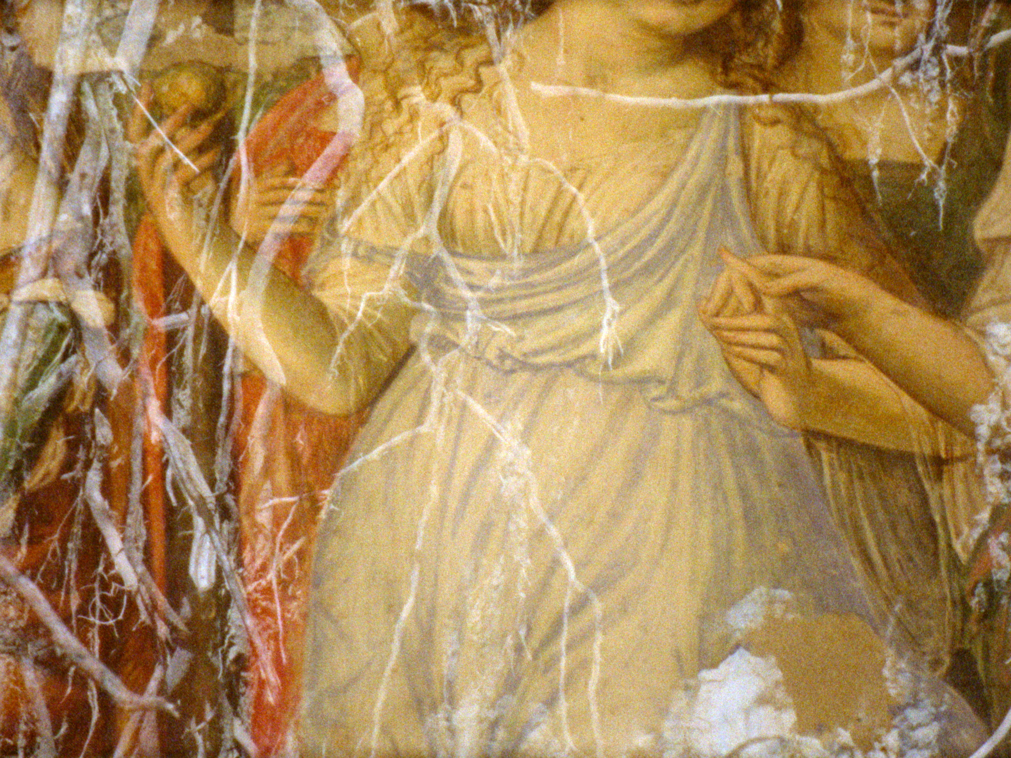 I recently worked with James Rushford, an Australian composer and performer, whose work has been described as “haunted Jacobean ASMR.” He sometimes plays a portative organ, or organetto, which originated in the twelfth century. The organetto has a row of flue pipes and a set of bellows and can sit on the performer’s lap. This positioning makes the body of the musician an important element in the composition, and the surrounding air being drawn continuously through the mediaeval instrument creates an interplay of chronologies and anachronisms. We were on residency together in Siena, and I was lucky enough to hear him play his organetto on a few occasions. James composed a piece for my most recent film Badlands, which is one of the few times I have choreographed the image to the sound—usually I tend to have the sound designed once the edit is complete. Because of this, it is my most dance-like film, and as it was partially fed by the work of Ernesto de Martino and his writings on Southern Italian magic rituals and the tarantella, this approach made the most sense.